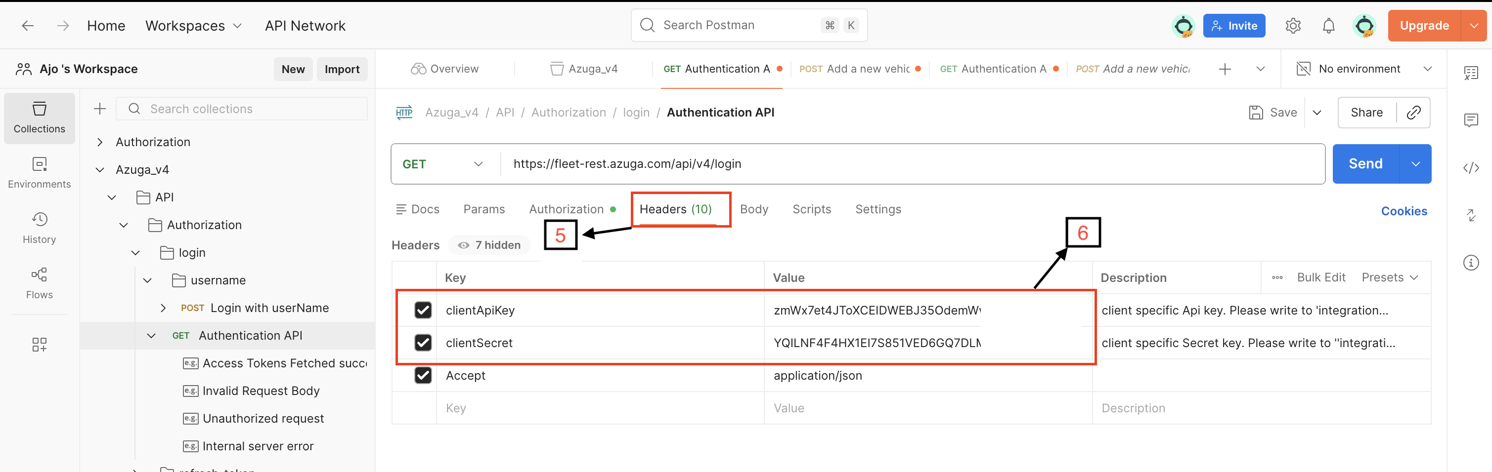 Download the latest Azuga V4 Postman Collection from the link below: Azuga V4 Postman Collection